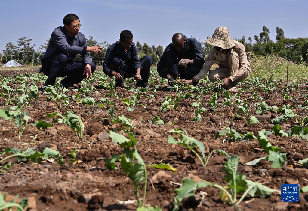 9月27日,在位于厄立特里亞阿斯馬拉的農業(yè)技術(shù)援助項目示范地,中國援厄第三期高級農業(yè)專(zhuān)家組油料作物專(zhuān)家周成(左一)指導當地農戶(hù)種植油菜。