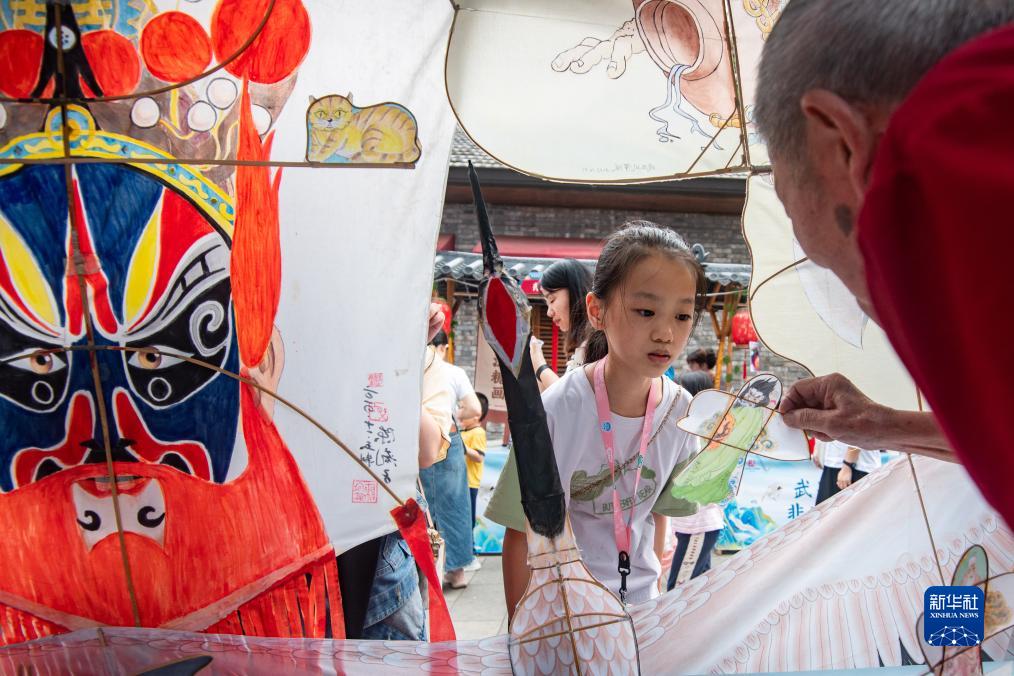 9月29日,一名小朋友在湖北省武漢市武昌區非遺“技·憶”節活動(dòng)現場(chǎng)欣賞篾扎風(fēng)箏。