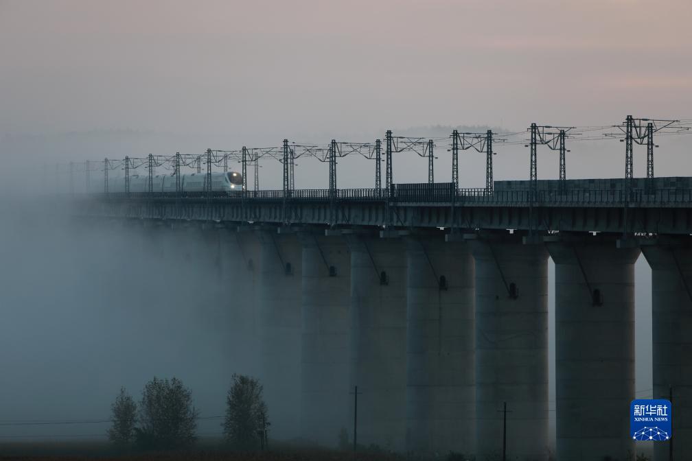 9月27日清晨,一列動(dòng)車(chē)組列車(chē)行駛在哈佳鐵路佳木斯站至依蘭站區間。