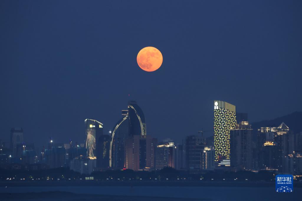 這是9月29日在福建省廈門(mén)市拍攝的月亮。