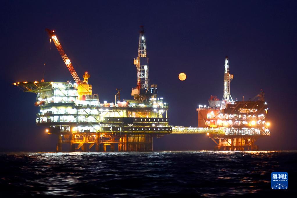 這是9月29日中秋之夜拍攝的渤海油田采油平臺。