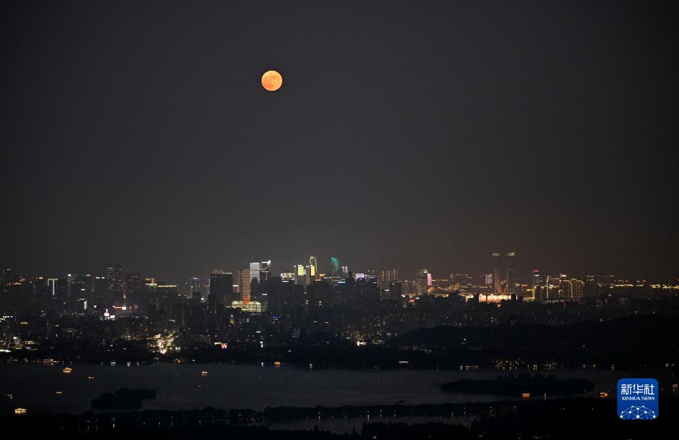 中秋佳節當晚,一輪滿(mǎn)月高懸在杭州上空,吸引眾多市民游客觀(guān)賞。