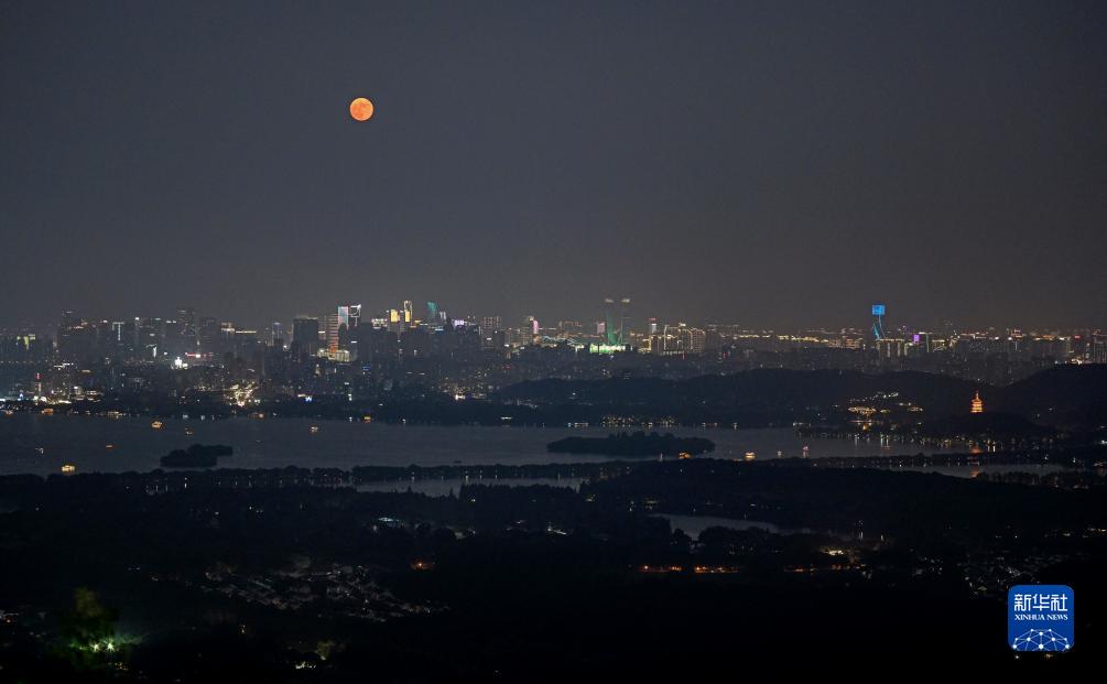 中秋佳節當晚,一輪滿(mǎn)月高懸在杭州上空,吸引眾多市民游客觀(guān)賞。