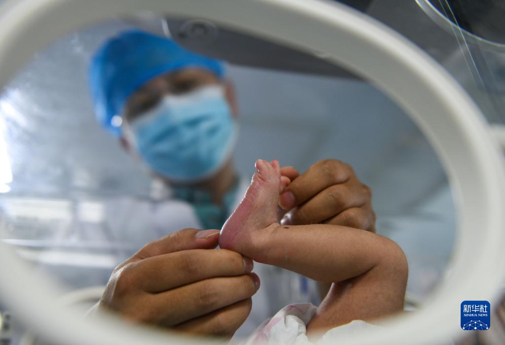 9月30日,在湖南省永州市道縣人民醫院新生兒科,醫務(wù)人員在給新生兒做護理。