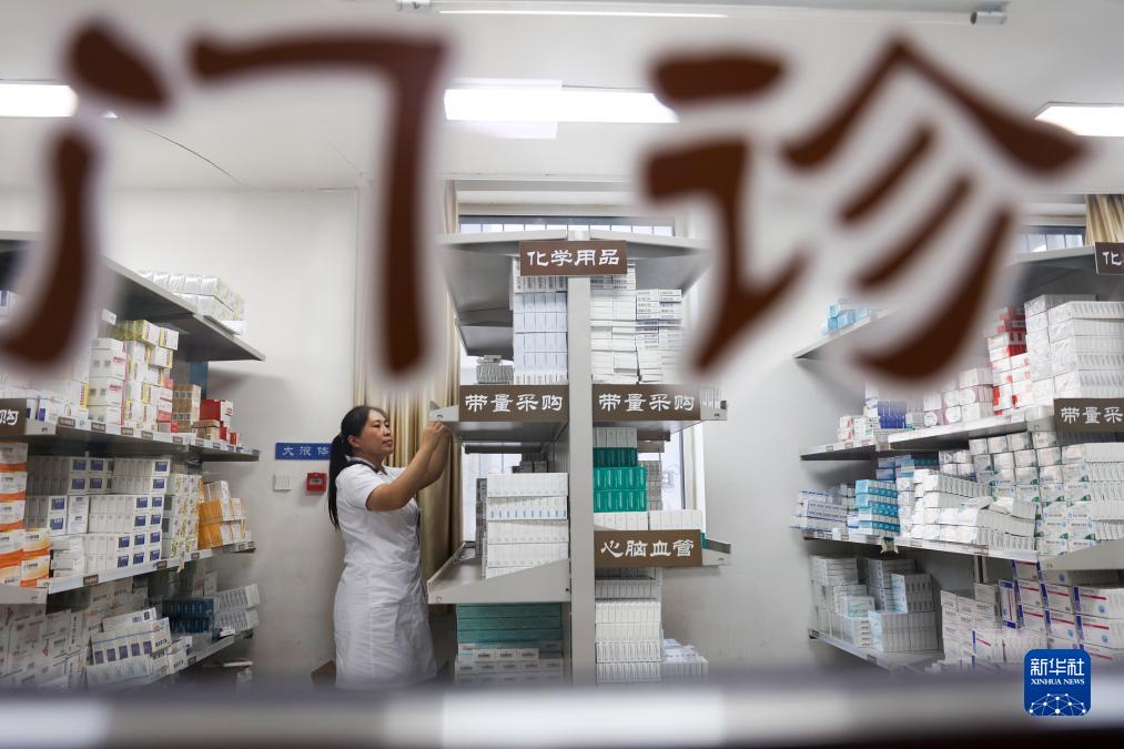 9月30日,在河北省石家莊晉州市中醫院,醫務(wù)人員在門(mén)診藥房為患者取藥。