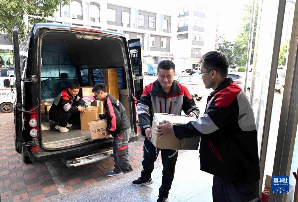 9月30日,快遞員在石家莊市新華區一家快遞網(wǎng)點(diǎn)分揀包裹。