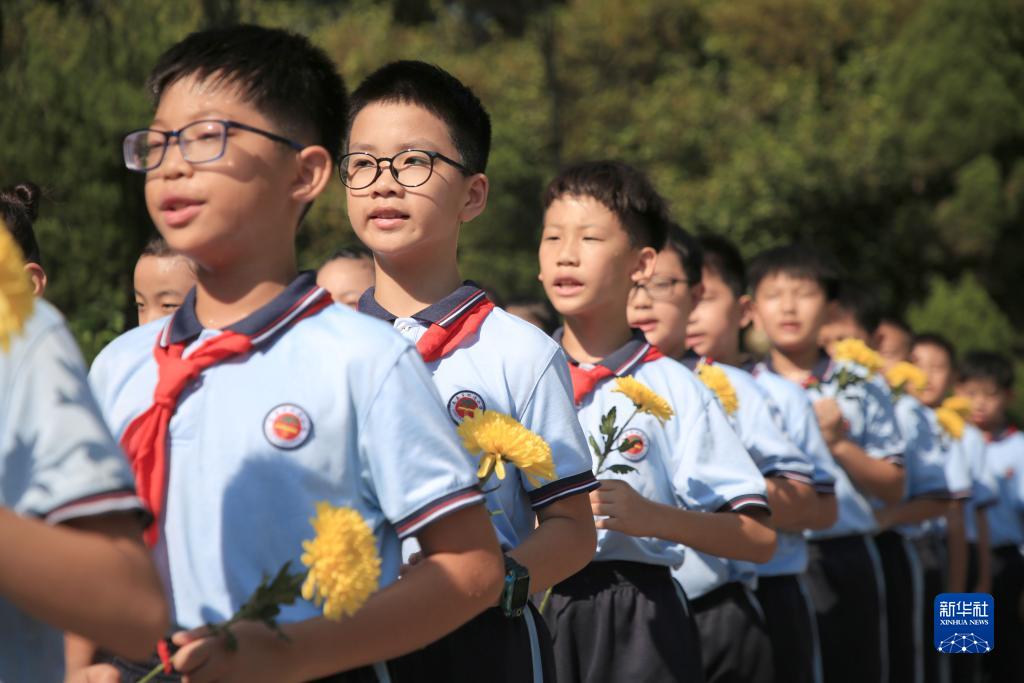 9月30日,少先隊員在福建省龍巖市閩西革命烈士陵園參加烈士紀念日活動(dòng)。