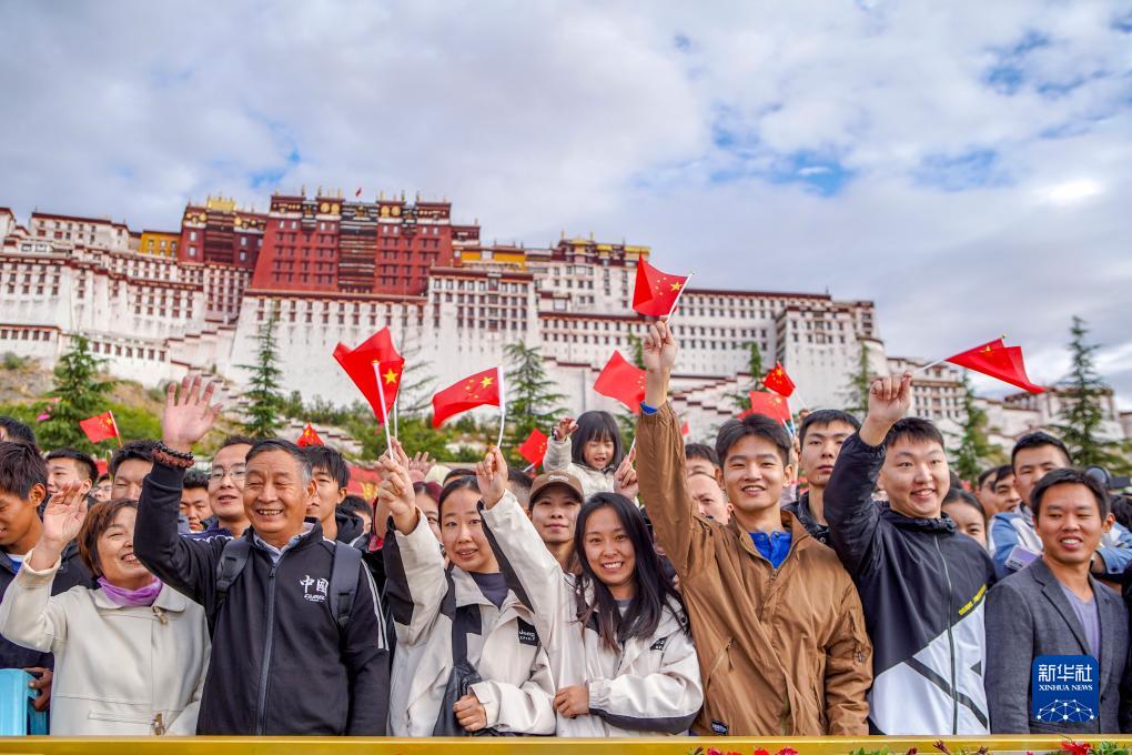 10月1日上午,人們在拉薩布達拉宮廣場(chǎng)參加西藏自治區慶祝中華人民共和國成立74周年“升國旗、唱國歌”儀式。