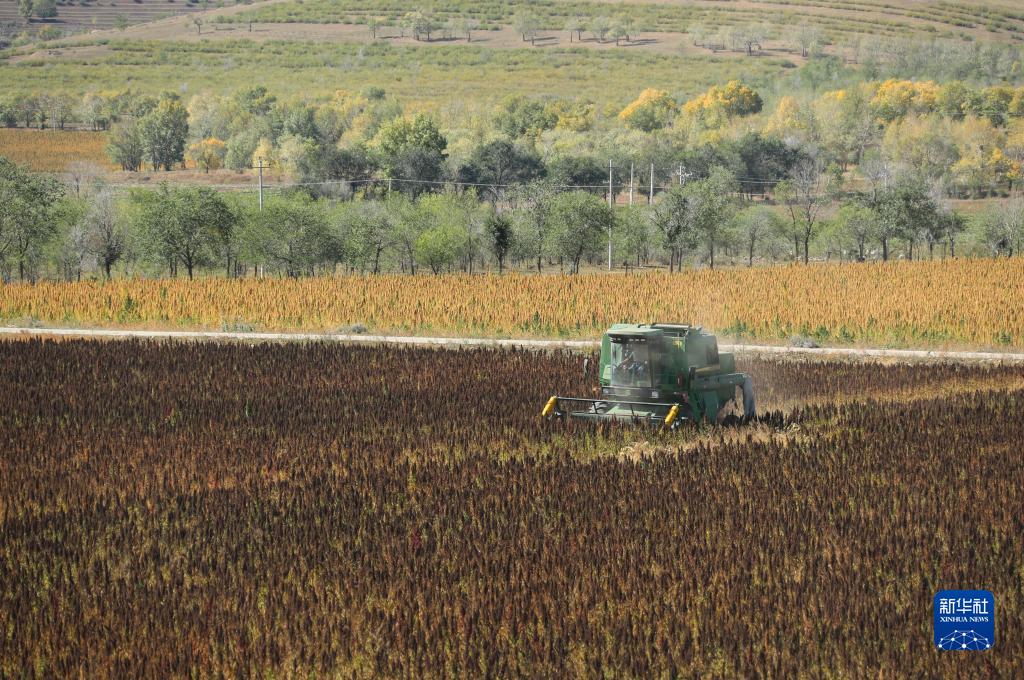 10月1日,在沽源縣白土窯鄉小西溝村,當地農機手在操作收割機收獲藜麥。
