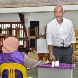這是9月30日,穆伊祖在馬爾代夫首都馬累一處投票站投票。