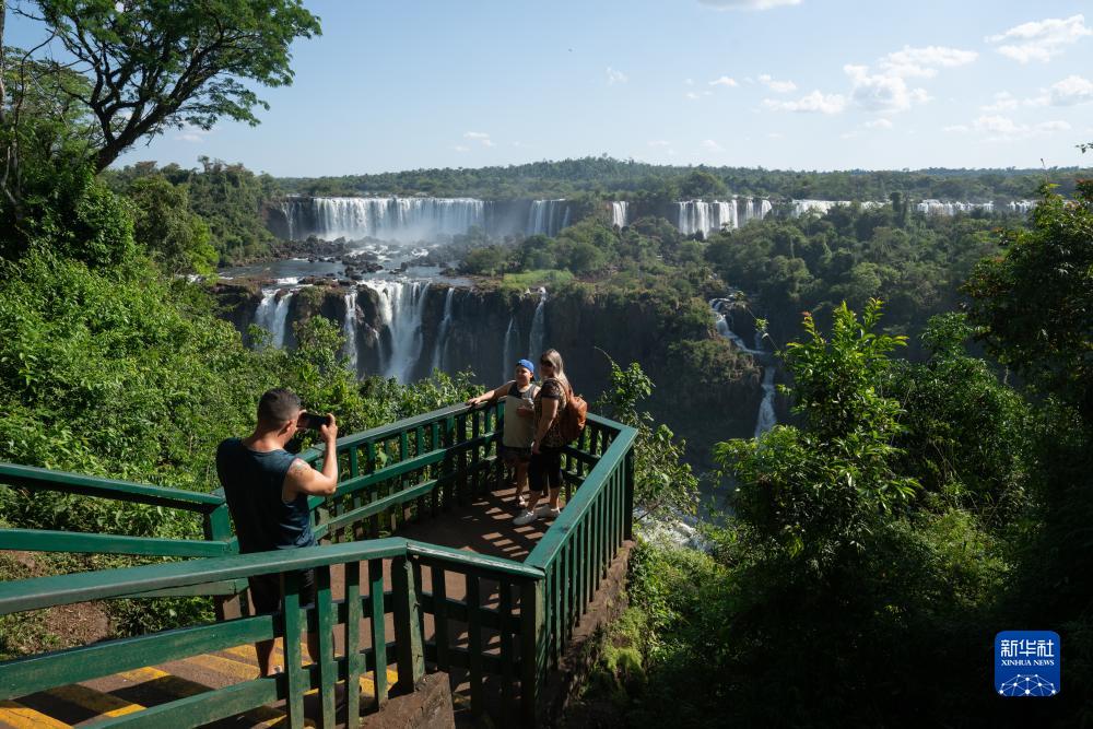 10月1日,游客在巴西巴拉那州伊瓜蘇大瀑布景區內參觀(guān)。