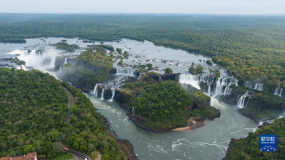 這是9月29日在巴西巴拉那州拍攝的伊瓜蘇大瀑布(無(wú)人機照片)。