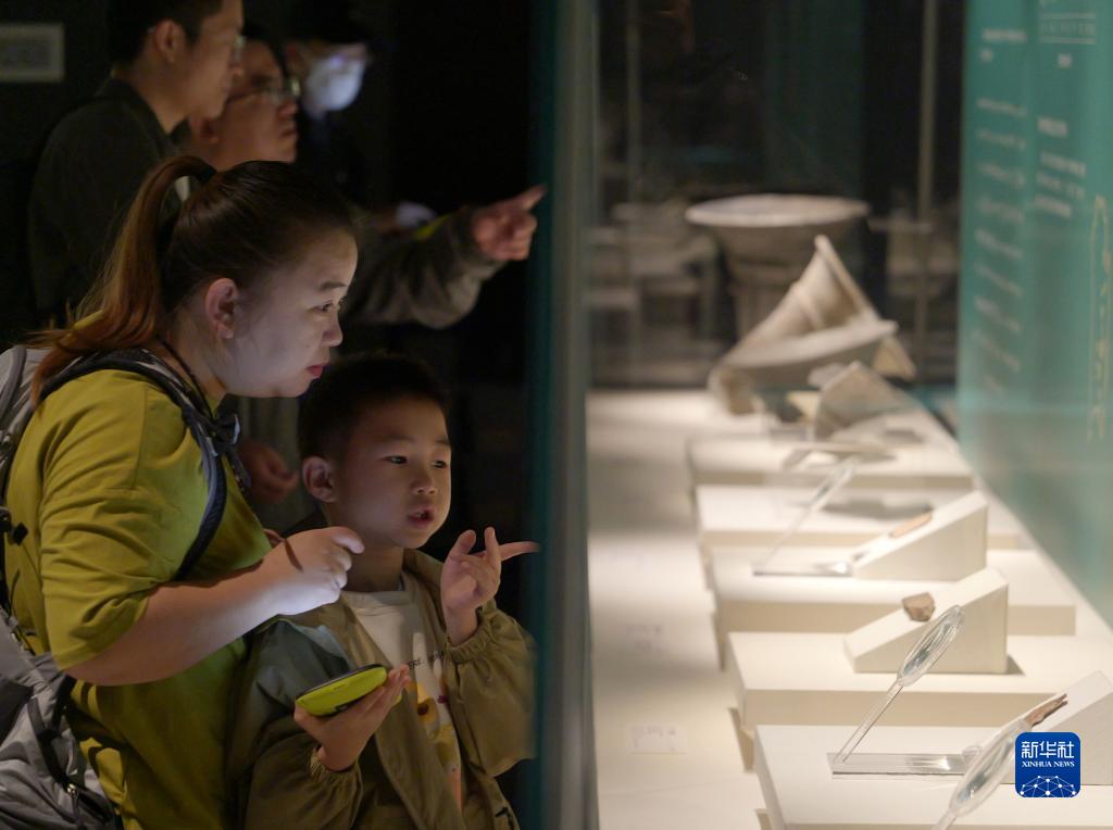 10月2日,小朋友和家長(cháng)在鄭州商都遺址博物院參觀(guān)。