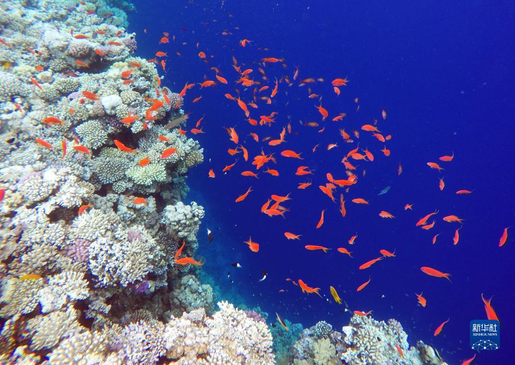 這是10月2日在埃及西奈半島達哈布藍洞內拍攝的珊瑚和魚(yú)類(lèi)。