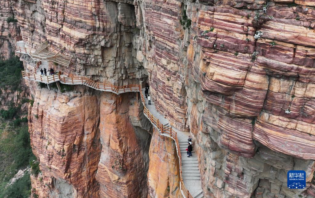 10月2日,游客在河北省武安市東太行景區觀(guān)光(無(wú)人機照片)。