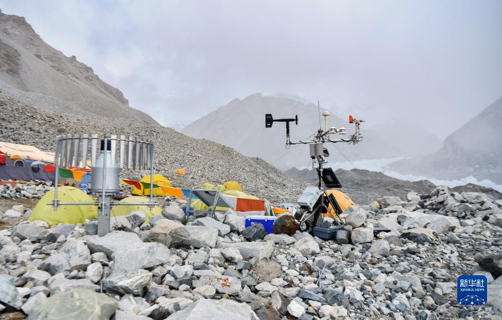 位于海拔5700米卓奧友峰前進(jìn)營(yíng)地的自動(dòng)氣象站(9月29日攝)。