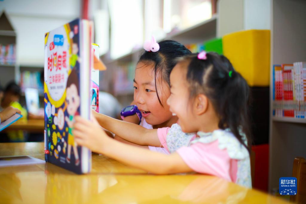 10月3日,小朋友在貴州省黔西市錦繡街道文化站閱讀。