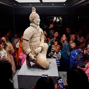 中秋國慶長(cháng)假期間,位于陜西省西安市臨潼區的秦始皇帝陵博物院內游人如織,客流量持續高位運行,日游客量達6萬(wàn)以上。