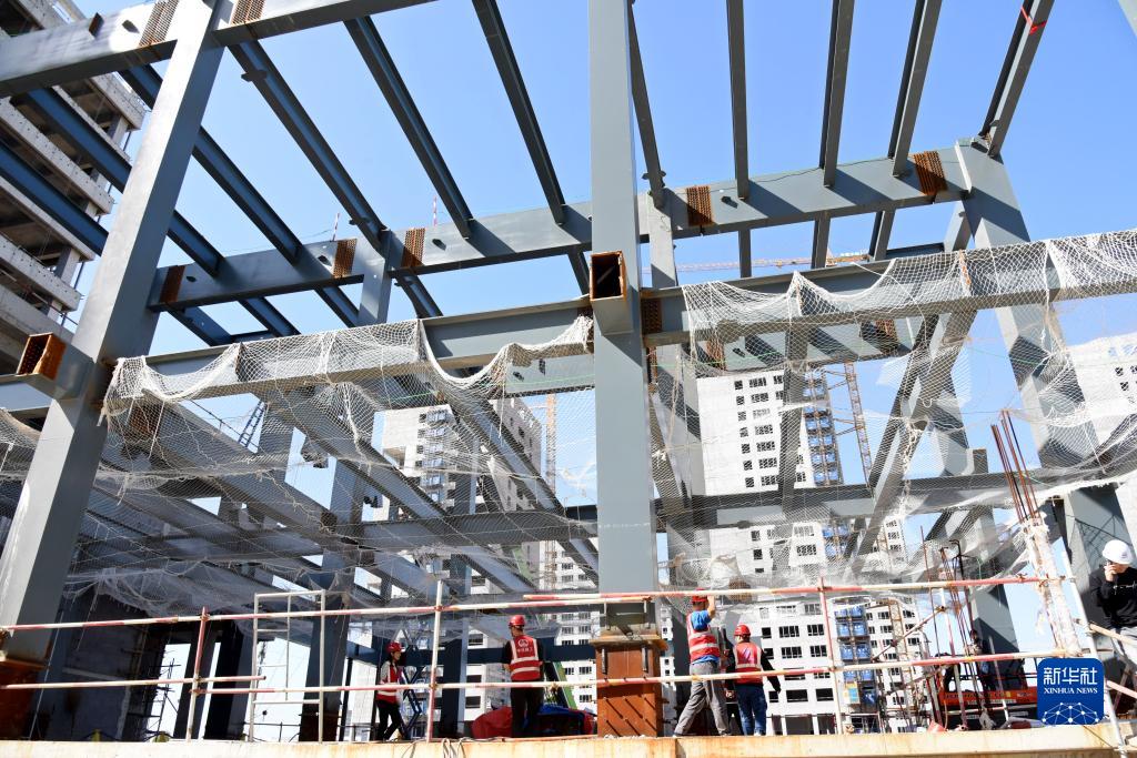 10月5日,中鐵建工建設者在項目工地上進(jìn)行鋼結構安裝。