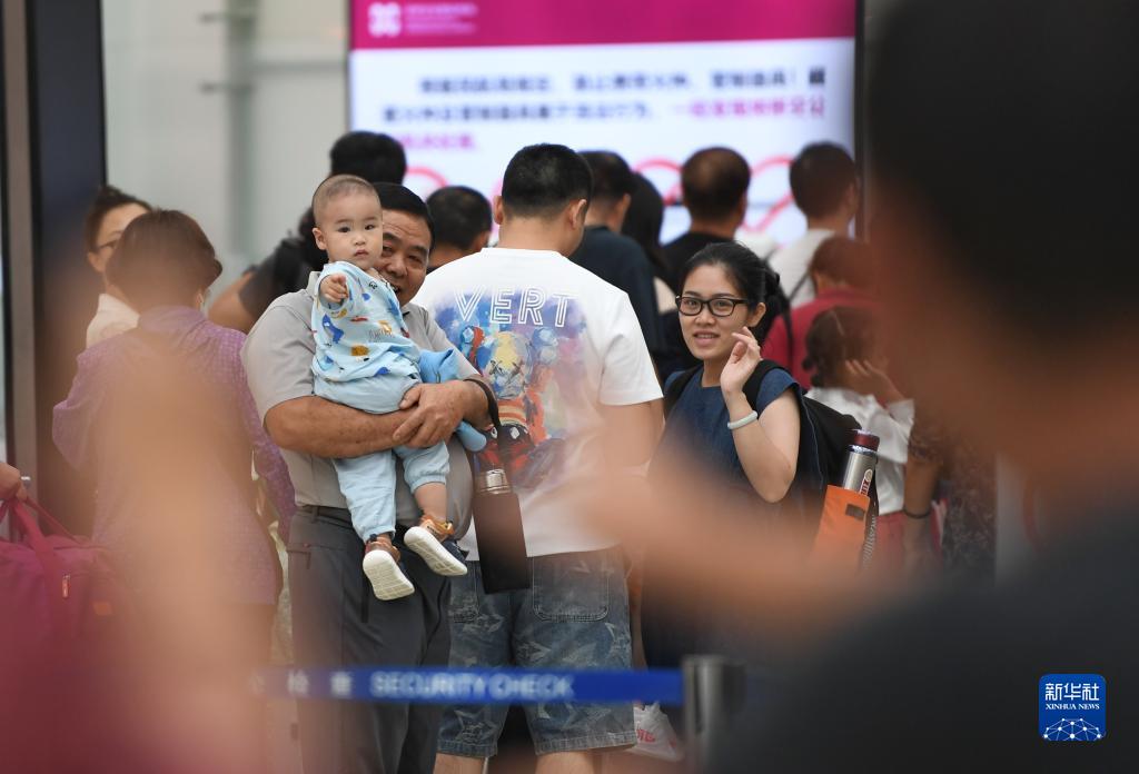 10月5日,旅客在深圳機場(chǎng)與親人告別。