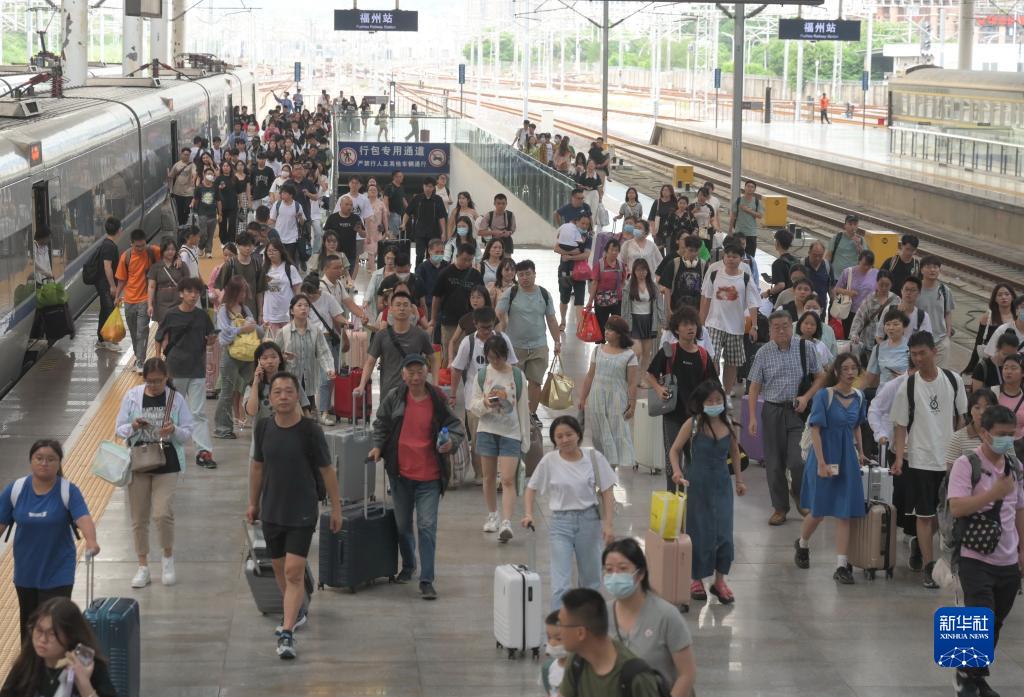 10月5日,旅客乘坐動(dòng)車(chē)到達福州火車(chē)站。