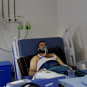 10月5日,在敘利亞中部的霍姆斯,一名受傷的男子在醫院接受治療。