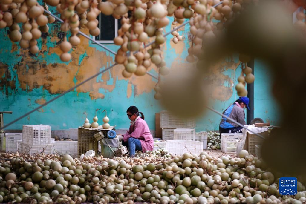 10月5日,河北省邢臺市信都區會(huì )寧鎮張爾莊村村民在加工葫蘆。