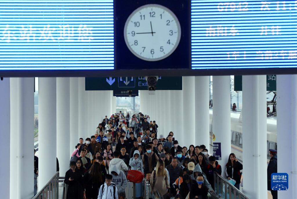 10月6日,在鄭渝高鐵南陽(yáng)東站,旅客有序進(jìn)站。