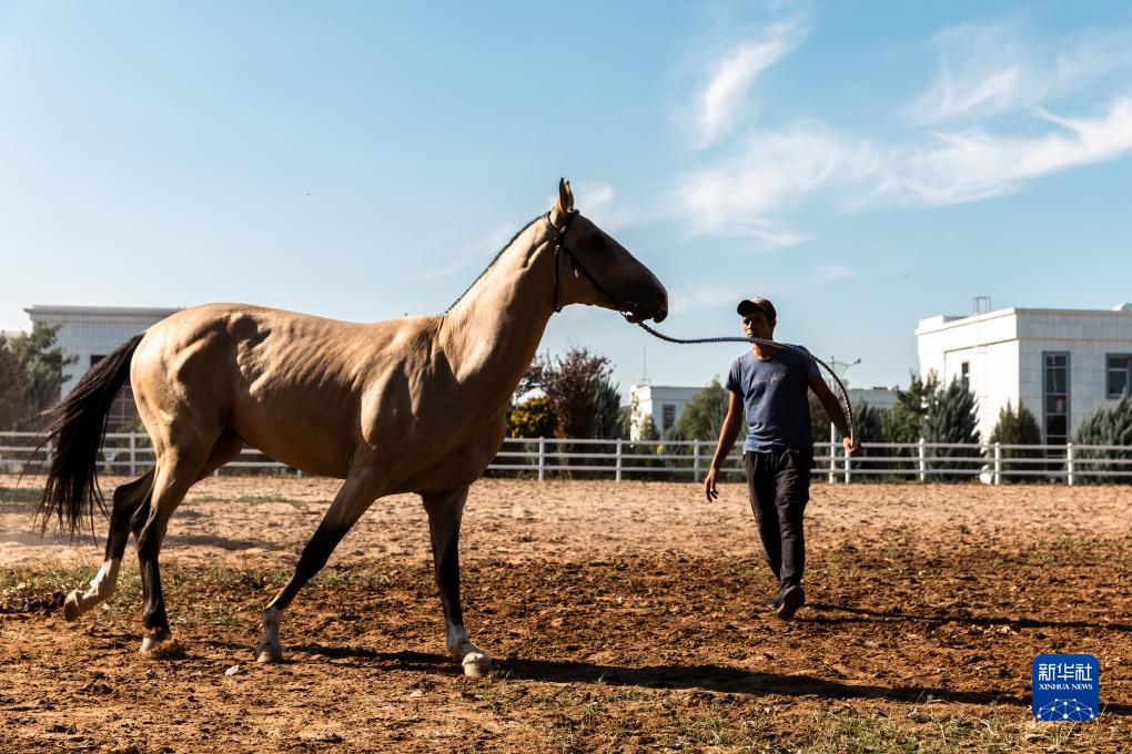 汗血馬學(xué)名阿哈爾捷金馬,原產(chǎn)于土庫曼斯坦科佩特山脈和卡拉庫姆沙漠間的阿哈爾綠洲。阿哈爾捷金馬是世界最古老的馬種之一,被土庫曼人稱(chēng)為“天馬”,是土庫曼斯坦的國家象征,其形象被繪制在土庫曼斯坦國徽中央。新華社記者 李木子 攝