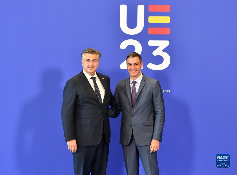 10月6日,在西班牙南部城市格拉納達,前來(lái)參加歐盟領(lǐng)導人非正式會(huì )議的克羅地亞總理普連科維奇(左)與西班牙代理首相桑切斯致意。
