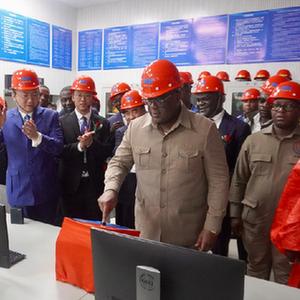 10月6日,剛果(金)總統齊塞克迪(中)在位于盧阿拉巴省的布桑加水電站按下發(fā)電機組運行總按鈕,這標志著(zhù)布桑加水電站正式開(kāi)始發(fā)電。