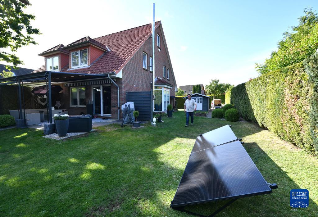 在德國施瓦岑貝克小鎮,當地居民迪爾克家中安裝了中國產(chǎn)太陽(yáng)能設備(5月30日攝)。