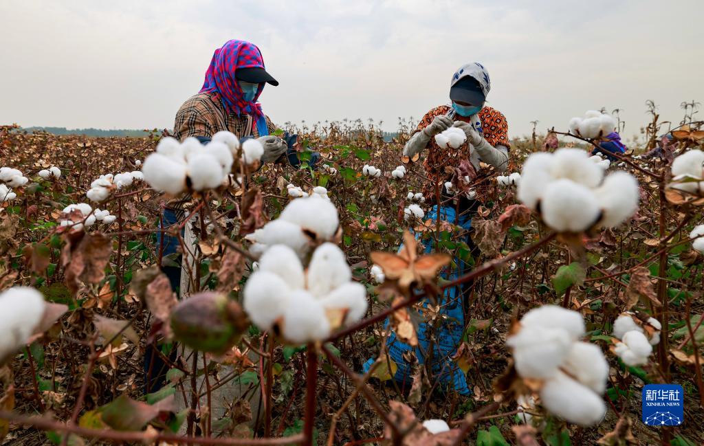 10月7日,河北省唐山市豐南區東田莊鄉劉大官村的農民在田間采收棉花。