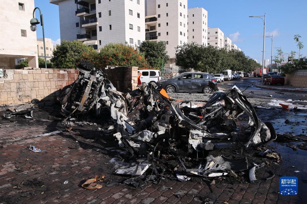 這是10月7日在以色列南部城市阿什克隆拍攝的遭火箭彈破壞的車(chē)輛。