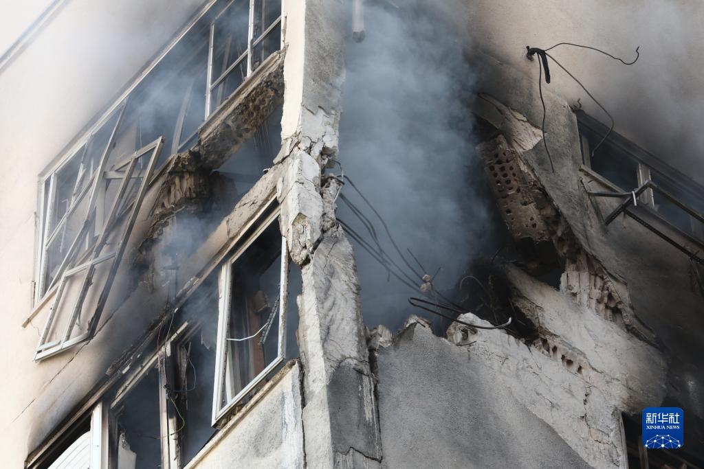 這是10月7日在以色列特拉維夫拍攝的一棟遭火箭彈襲擊的建筑。