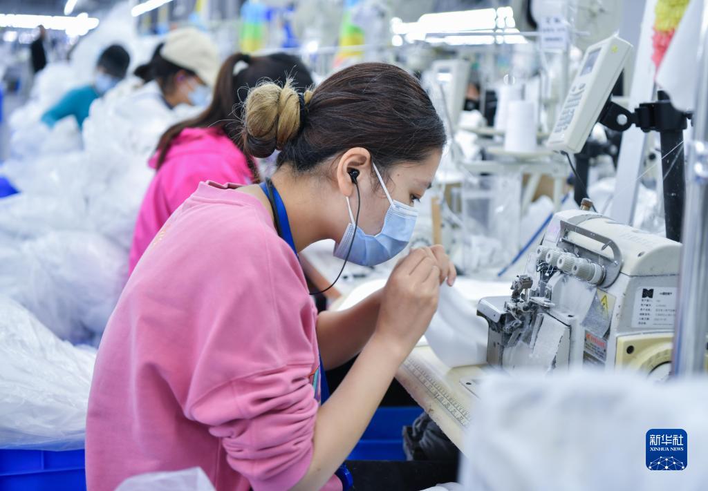 10月7日,工人在貴州省畢節市納雍經(jīng)濟開(kāi)發(fā)區畢節市晶煌制衣有限公司加工車(chē)間工作。