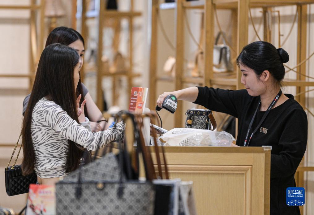 消費者在中免集團??谌赵聫V場(chǎng)免稅店購物(9月29日攝)。