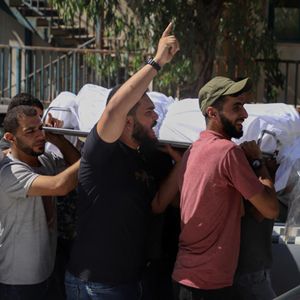 10月7日,人們在加沙城的一家醫院抬著(zhù)遇難親人的尸體。