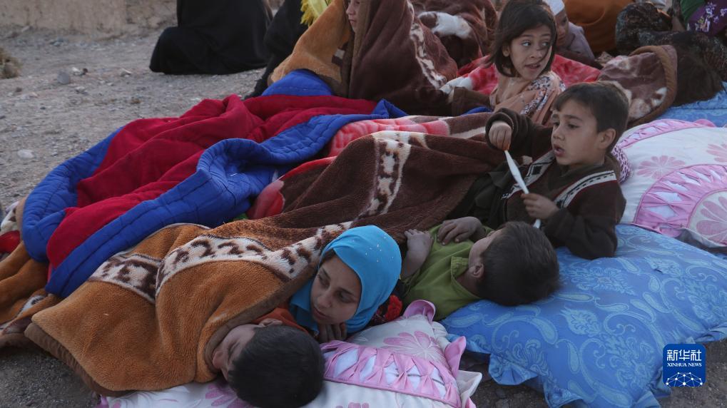 10月7日,在阿富汗赫拉特省,受災民眾躺在地上休息。