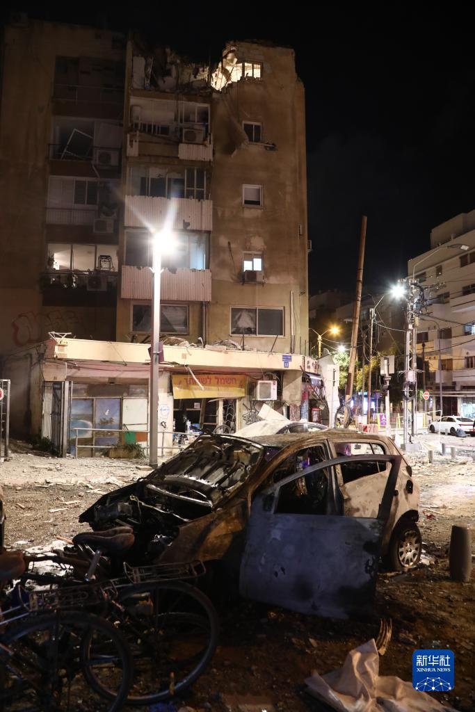 這是10月7日在以色列特拉維夫拍攝的遭火箭彈破壞的車(chē)輛。