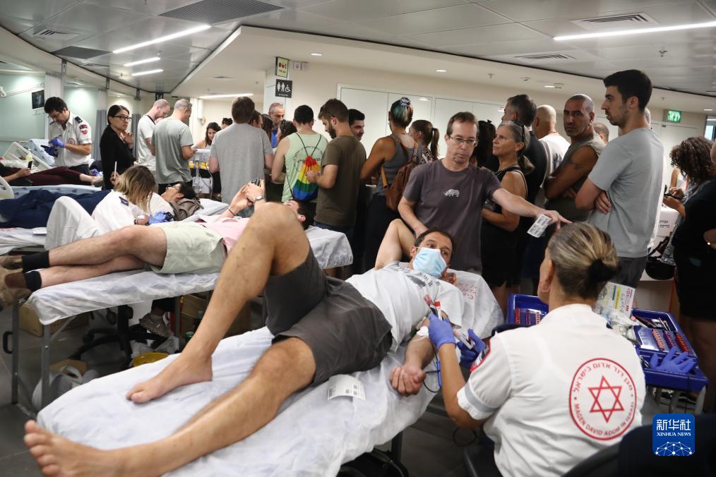 10月7日,以色列民眾在特拉維夫一家醫院里獻血。