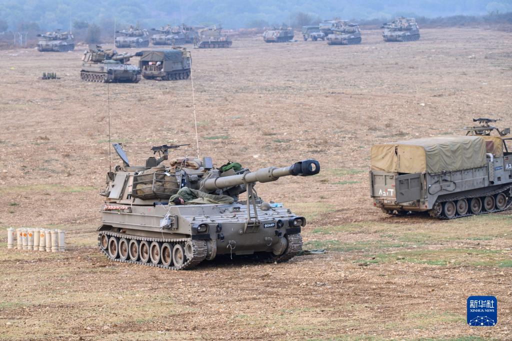 這是10月8日在以色列北部靠近黎巴嫩的邊境區域拍攝的以色列軍用車(chē)輛。