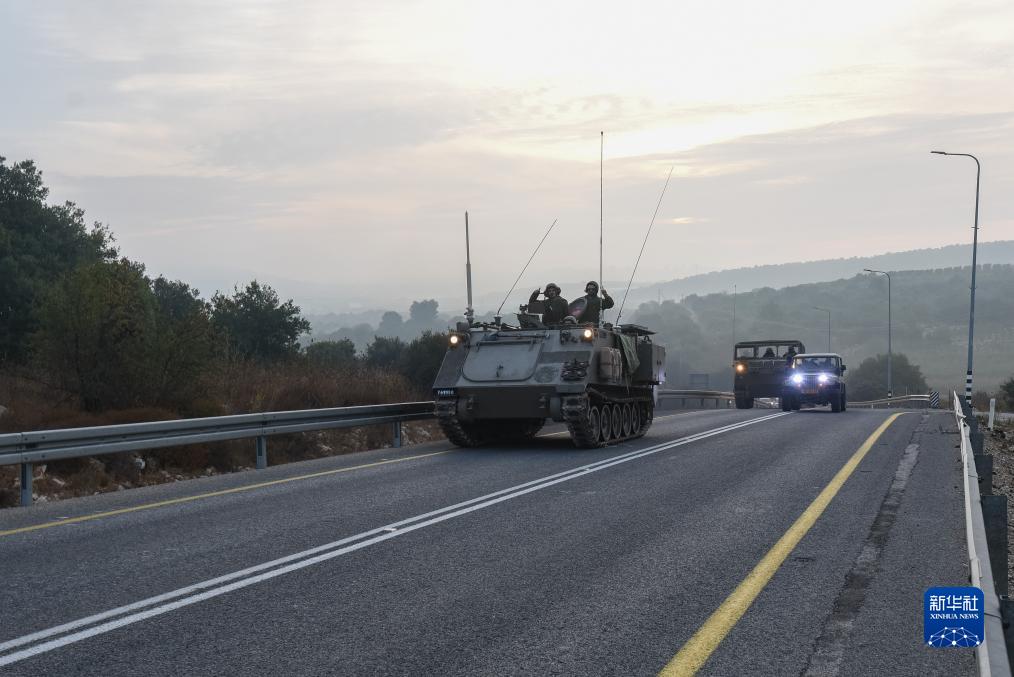10月8日,以色列軍用車(chē)輛在北部靠近黎巴嫩邊境區域的道路上行駛。