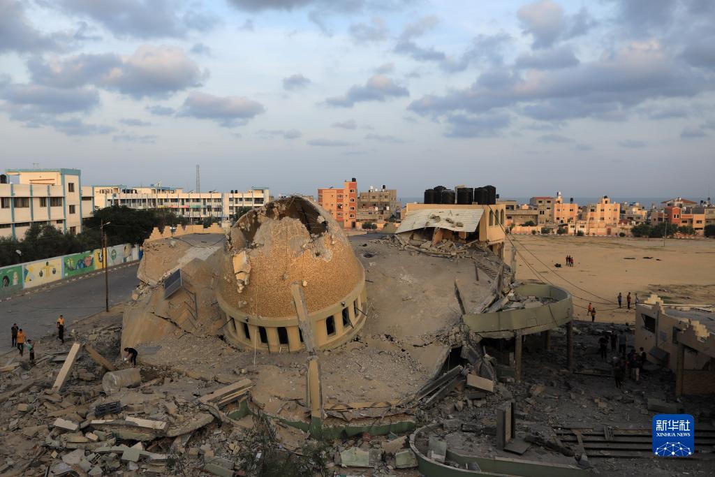 這是10月8日在加沙地帶南部城市汗尤尼斯拍攝的一座被以色列空襲炸毀的清真寺。