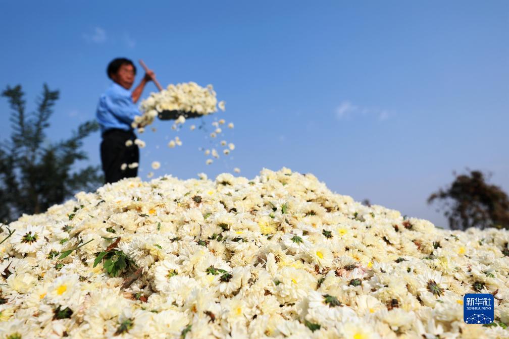 正是收獲菊花的時(shí)節,在河北省邢臺市任澤區大屯鄉的菊花種植基地,工人們忙著(zhù)采摘。