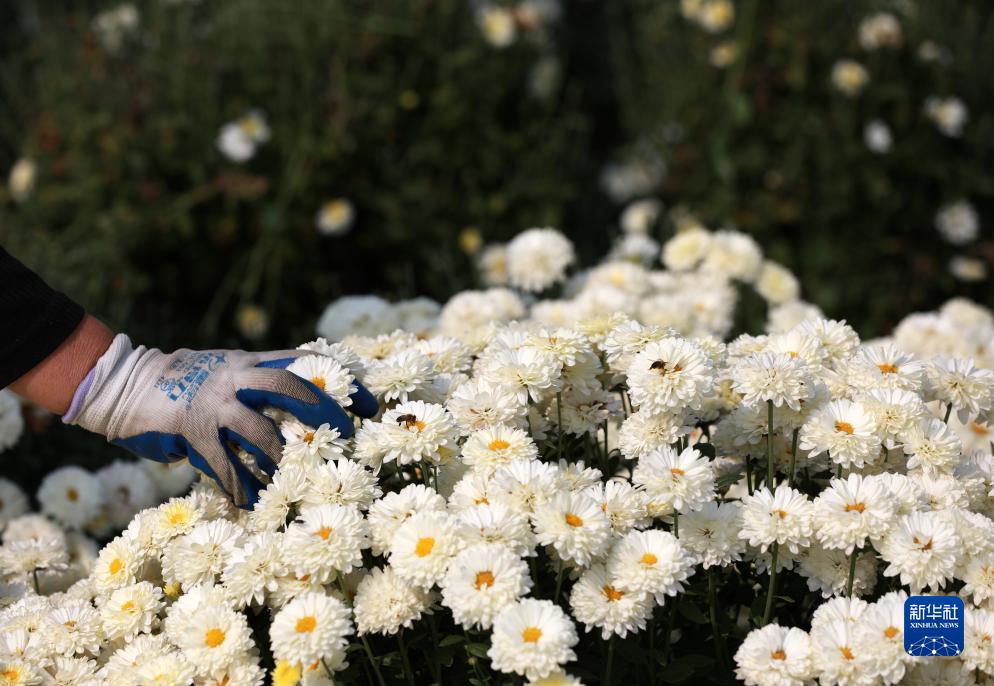 正是收獲菊花的時(shí)節,在河北省邢臺市任澤區大屯鄉的菊花種植基地,工人們忙著(zhù)采摘。