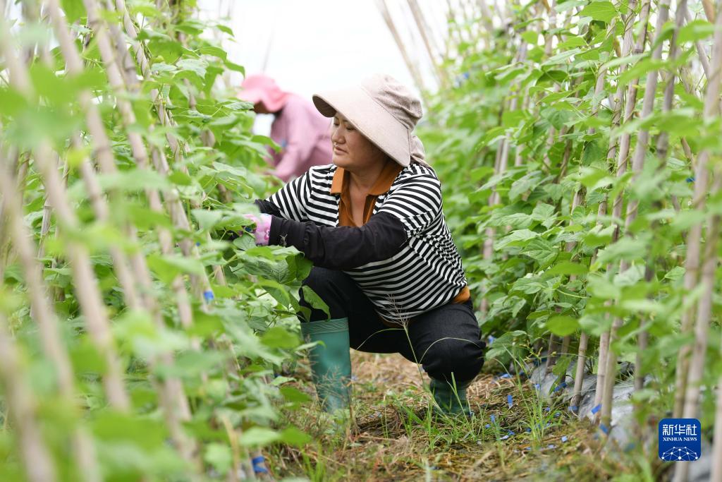 10月8日,村民在貴州省黔東南苗族侗族自治州黃平縣舊州鎮東門(mén)村田間管護四季豆。