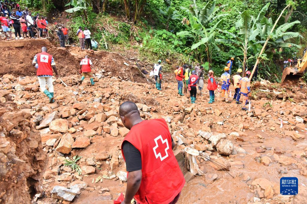 10月9日,人們在喀麥隆雅溫得山體滑坡災害現場(chǎng)開(kāi)展搜救工作。