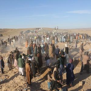 10月9日,在阿富汗西部赫拉特省津達詹區,民眾為悼念地震遇難者舉辦葬禮。