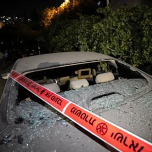 10月9日,在耶路撒冷以西的阿布高什村,一輛汽車(chē)遭到火箭彈破壞。